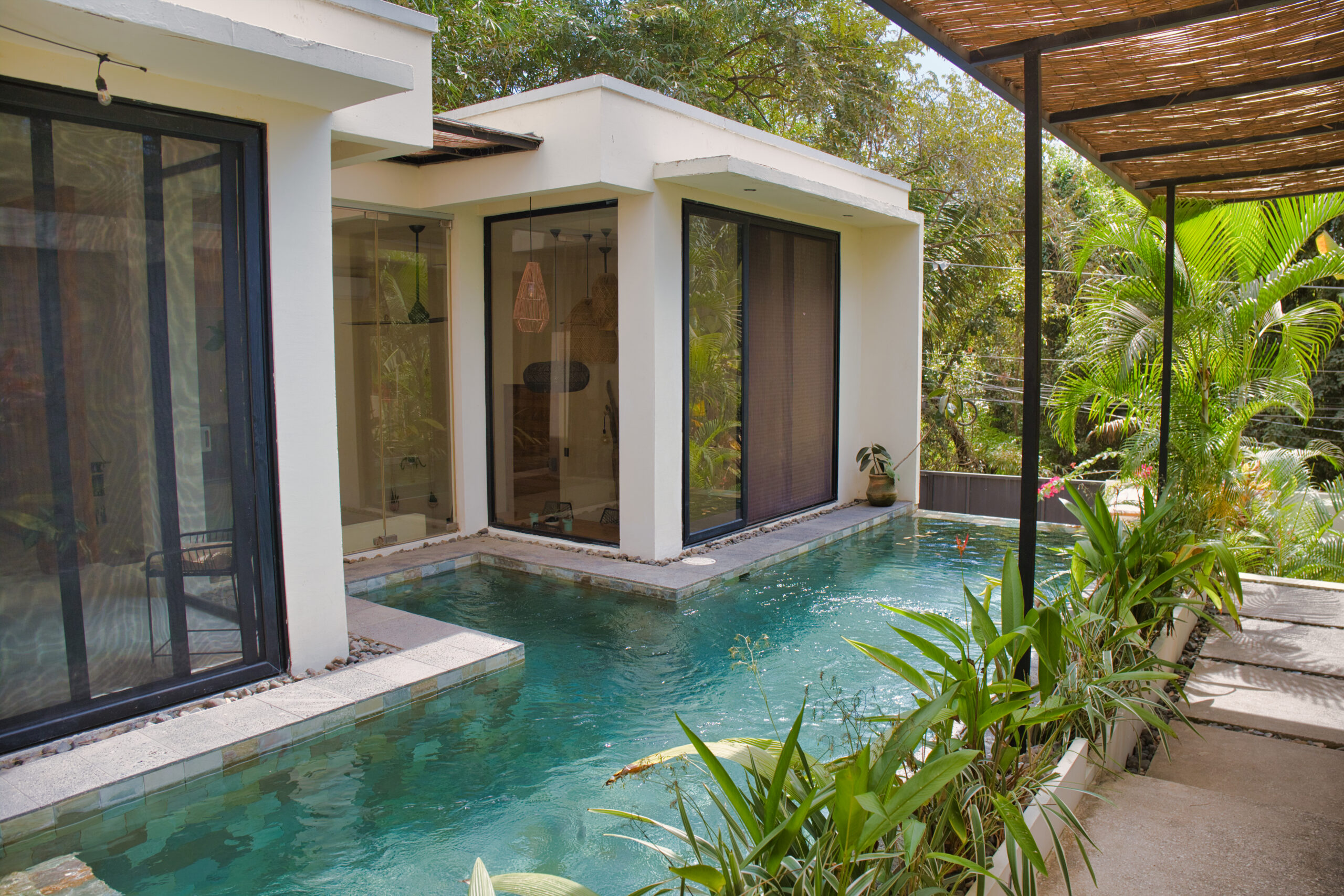 This modern tropical villa offers the perfect balance of high-end comfort and strategic location. Situated just a 5-minute walk to Playa Pelada and a 5-minute drive to the heart of Guiones, it enjoys a privileged geographic position, within immediate reach of all amenities (restaurants, supermarkets, and services).